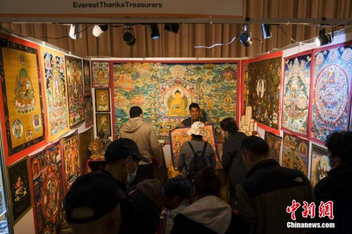 5月4日,西藏(拉薩)中外商品展銷會現(xiàn)場的唐卡展銷位。據(jù)西藏自治區(qū)外經(jīng)貿(mào)協(xié)會工作人員介紹,展銷會從4月29日至5月4日舉行,共有印度、尼泊爾、巴基斯坦、伊朗、塔吉克斯坦、不丹及阿富汗7個(gè)國家的84名外籍人員攜本國特色產(chǎn)品參展。中新社記者 江飛波 攝