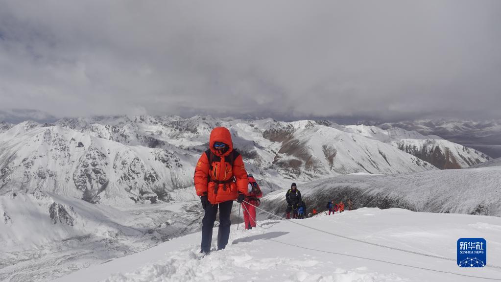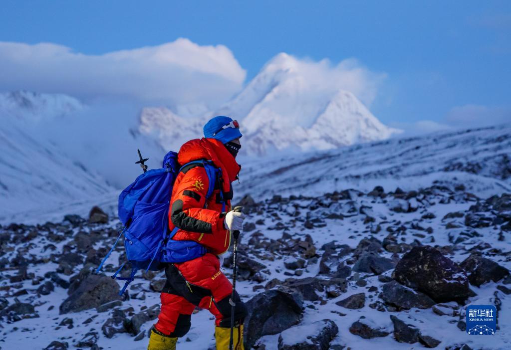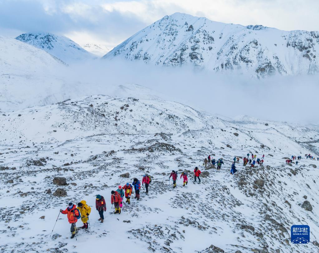 5月3日,登山愛(ài)好者正在向海拔6010米的洛堆峰峰頂進(jìn)發(fā)。新華社記者 黃耀漫 攝