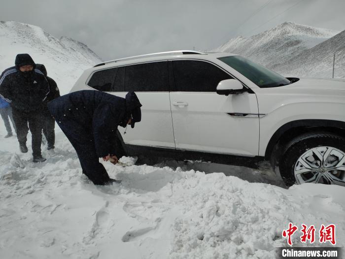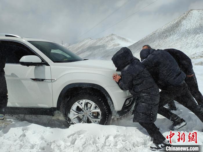 民警隨即打火發(fā)動警車,行至被困車輛前面,利用拖車?yán)K連接警車與被困車輛,其余救援人員雙手搭上車輛用力向前推,“一、二、三,加油!”“動了,動了,車子可以向前移動了。”鏟除積雪、鋪撒砂石、推拉車輛……接下來救援人員用同樣的方法開始拖出其余車輛,3個(gè)多小時(shí)后,5輛車、14名民眾全部脫離險(xiǎn)境。所有被困車輛和人員安全抵達(dá)楚魯松杰鄉(xiāng)。