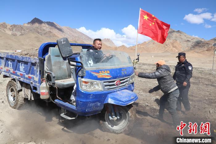 圖為民警任博與民眾分青稞?!育垺z