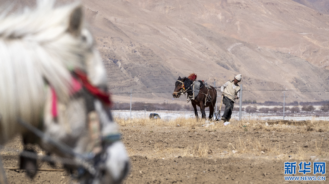 5月20日,西藏定日縣扎西宗鄉(xiāng)日白拉新村的村民在犁地。新華網(wǎng) 旦增努布 攝