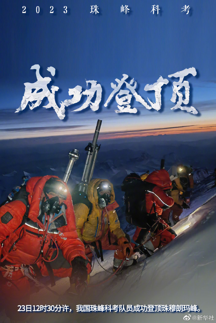 這是我國珠峰科考繼2022年之后,再次突破8000米以上海拔高度。當日,科考隊員在珠峰峰頂利用科學儀器,采集珠峰峰頂?shù)难┍鶚悠?,用于分析氣候環(huán)境指標。