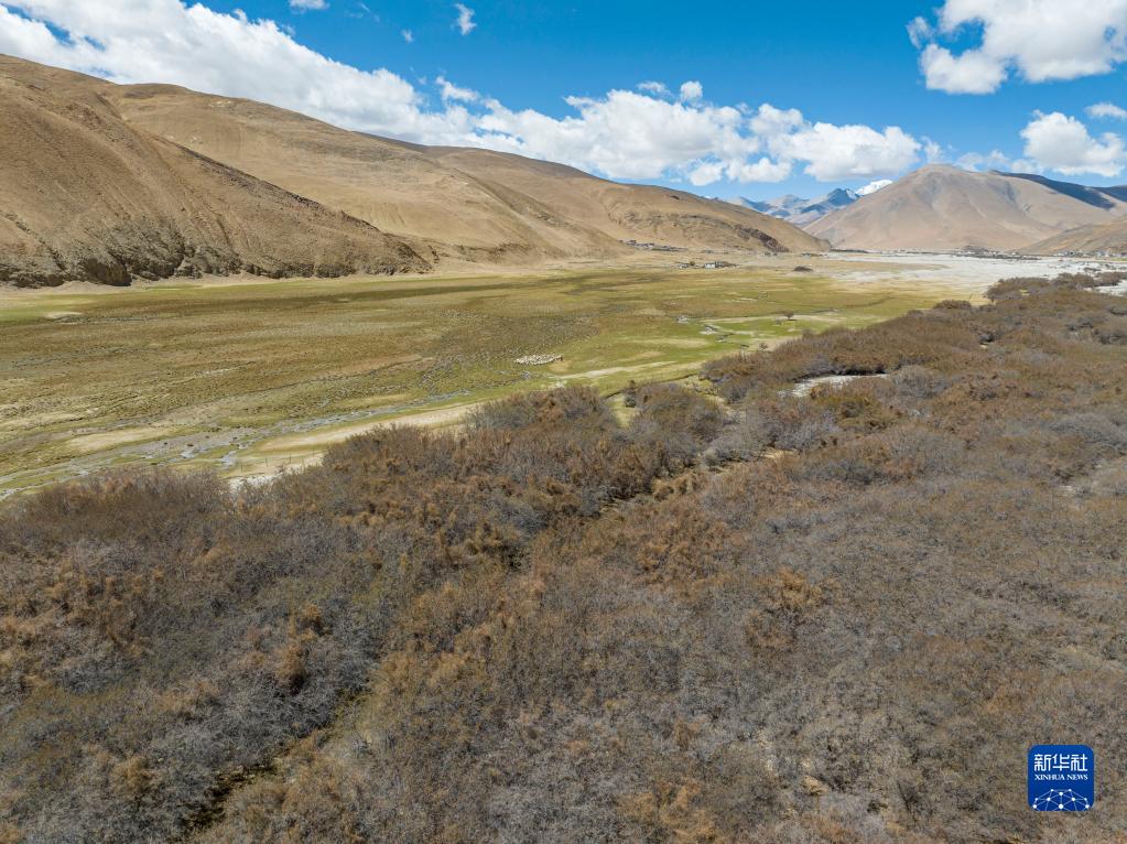 這是在珠峰國(guó)家級(jí)自然保護(hù)區(qū)內(nèi)拍攝的沙棘林和濕地(5月25日攝,無(wú)人機(jī)照片)。新華社記者 孫非 攝