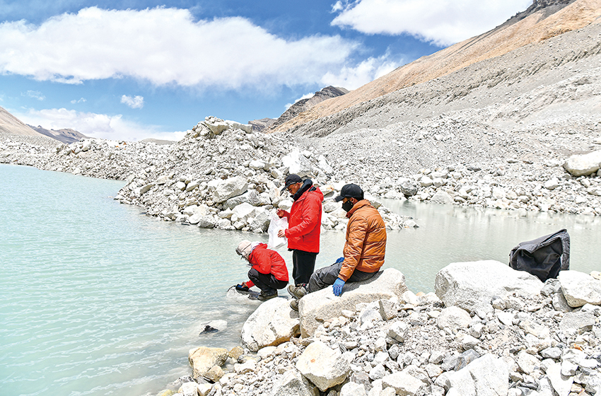 “我們沿著喜馬拉雅山脈做了很多工作,采集了2000多份樣品?!眲⒓褲M懷憧憬地說,“我們會(huì)從大本營出發(fā)努力接近海拔7000米區(qū)域,完成15個(gè)雪冰樣品和15個(gè)沙石樣品采集。希望通過一塊塊拼圖,努力還原青藏高原形成演化的‘大圖紙’?!?/p>