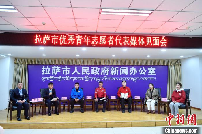圖為拉薩優(yōu)秀青年志愿者代表媒體見面會現(xiàn)場?!∝暩聛硭伞z
