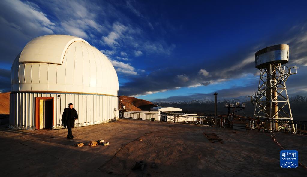 5月24日,日落時分,在阿里天文臺,尤顯龍走出望遠鏡圓頂。新華社記者 費茂華 攝