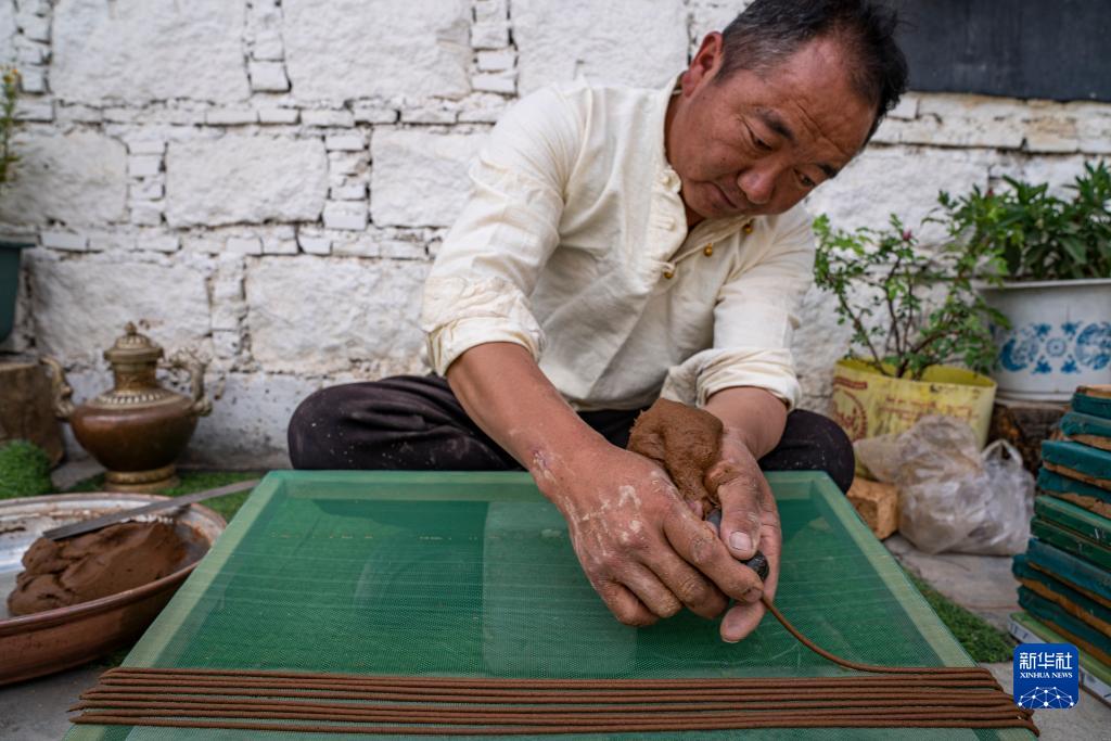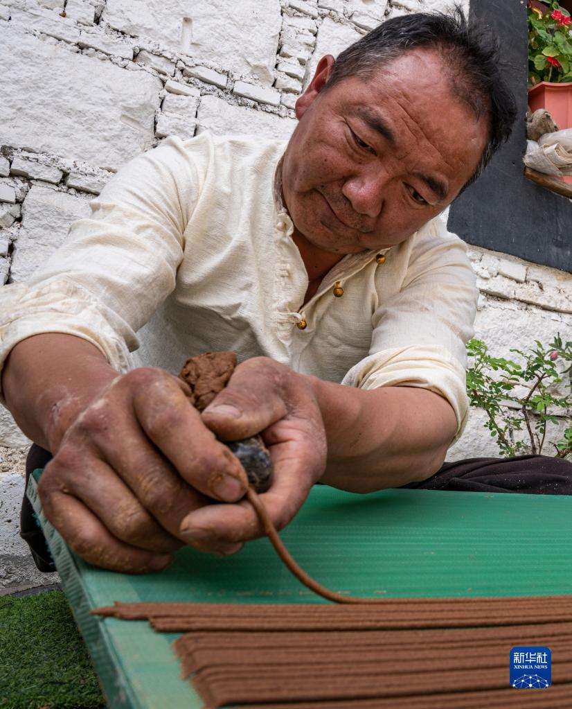 要保證每一根成型的藏香均勻且筆直,很考驗匠人的功底。為了制作合格的藏香,次仁多吉在地上一坐就是一整天,擠出的線香鋪滿房間。多年的制香經(jīng)歷,讓他在擁有出眾技藝的同時,也患上了職業(yè)病——時常關(guān)節(jié)疼。但次仁多吉不僅堅持至今,還順應(yīng)市場,研發(fā)了提神香、安眠香等新品種,并擴大了生產(chǎn)規(guī)模。