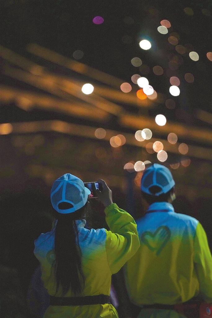 觀眾在拍攝煙花表演。記者 旦增蘭澤 潘多 白瑪澤旺 阿旺尼瑪 攝