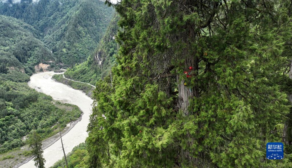 6月15日從空中俯瞰亞洲第一高樹(無人機照片)。新華社記者 晉美多吉 攝