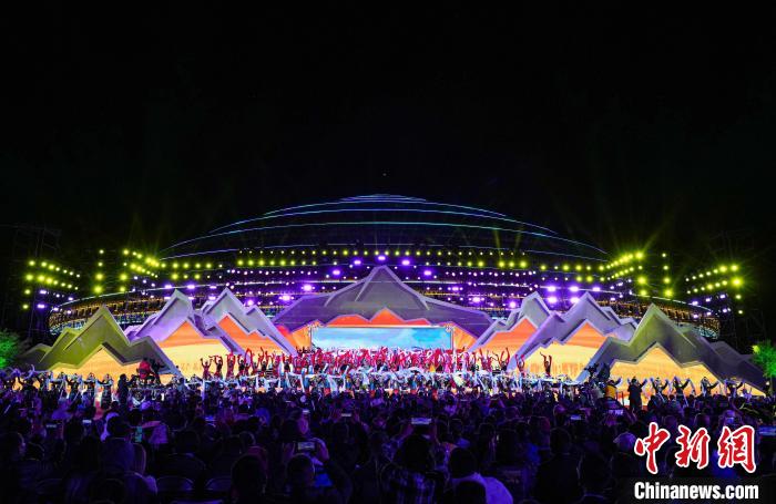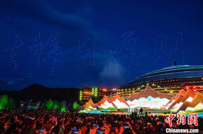 開幕式上,由300架無人機(jī)組成的暖場表演在日喀則珠峰文化旅游創(chuàng)意產(chǎn)業(yè)園區(qū)上空精彩呈現(xiàn),組成“珠峰故里、吉祥日喀則,歡迎您!”等陣型。匠心獨運的創(chuàng)意設(shè)計,流光溢彩的聲光電效果,以恢弘氣勢和華麗造型,展示日喀則的開放包容。文藝表演由序《珠峰頌歌》、上篇《戀上青稞》、下篇《極境暢想》和尾聲《吉祥日喀則》組成。聲,是情的流露;舞,是意的表達(dá)。文藝演出將民眾的生活與藝術(shù)相結(jié)合,融合傳統(tǒng)文化與現(xiàn)代歌舞等藝術(shù)形式,既富有傳統(tǒng)特色又極具時代魅力,將日喀則各族人民的喜悅和游情盡情抒發(fā),充分表達(dá)了日喀則各族人民對美好生活的熱愛和對祖國的祝福歌頌。