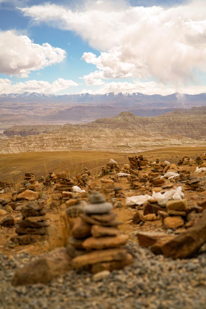 我來到札達土林的時候,除了為大自然的鬼斧神工而驚嘆之外,還看到了許許多多用石頭壘成的大大小小的瑪尼石堆。