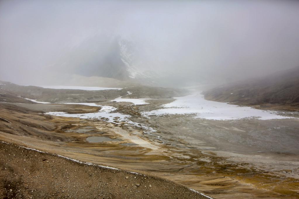 如果說札達土林和古格王國遺址給人的印象可以用宏偉壯觀來形容的話,那么雅魯藏布江發(fā)源地——杰瑪央宗冰川給人帶來的則是蕭瑟與遼闊的景象。我們趕到杰瑪央宗冰川的時候風雪交加。凜冽的寒風呼呼地刮在臉上像刀割一樣,風吹得人幾乎睜不開眼睛。作為本次報道的視頻記者之一,我當時最擔心的是機器拿不穩(wěn),拍攝畫面出現(xiàn)抖動的情況,所以拍攝全程我都把手中的相機攥得很緊。