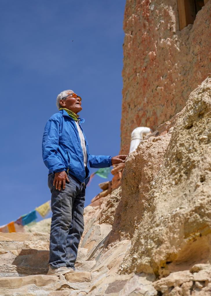 皮央和東嘎石窟遺址位于西藏自治區(qū)阿里地區(qū)札達縣境內(nèi)的皮央村、東嘎村,由皮央石窟群和東嘎扎西曲林寺遺址組成。由于兩村距離很近,遺址規(guī)模巨大,故命名為皮央和東嘎石窟遺址。仁增旺扎是一位75歲的老人,他從2002年開始被聘為當?shù)氐奈奈锉Wo管理員,從那時起就一直守護著皮央和東嘎石窟遺址,至今已經(jīng)有20多年。