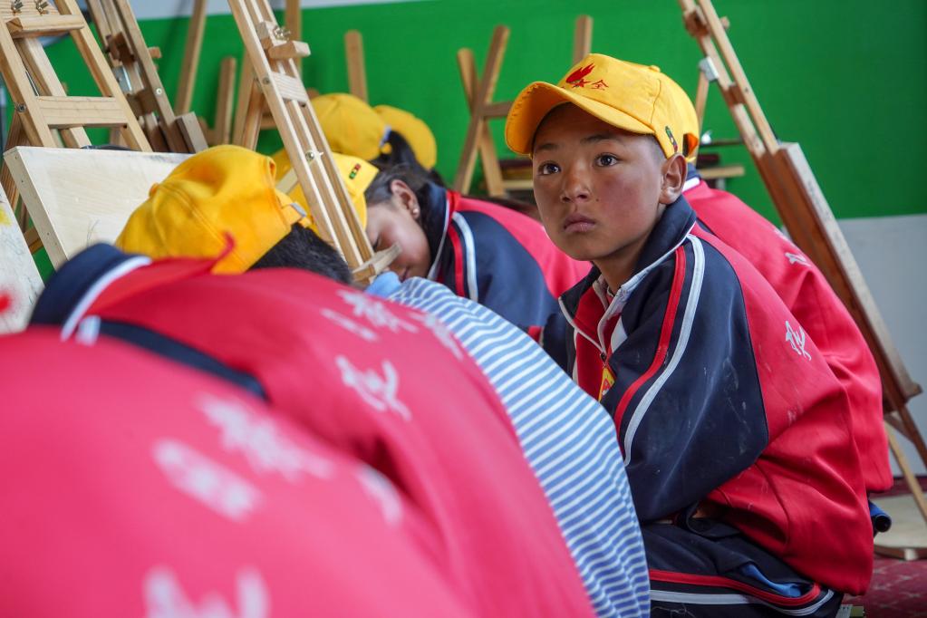 扎西宗鄉(xiāng)完全小學的學生在上美術課(6月5日攝)。