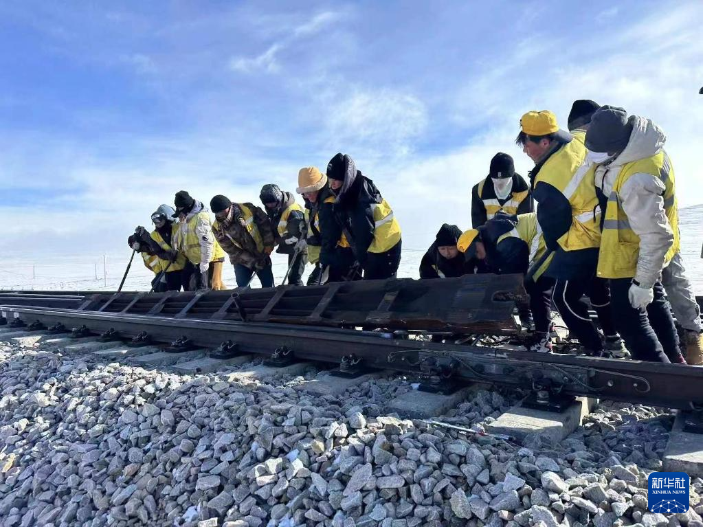 中鐵十二局集團(tuán)鐵路養(yǎng)護(hù)工程有限公司安多車間養(yǎng)護(hù)者進(jìn)行鐵路軌道養(yǎng)護(hù)作業(yè)。受訪者供圖