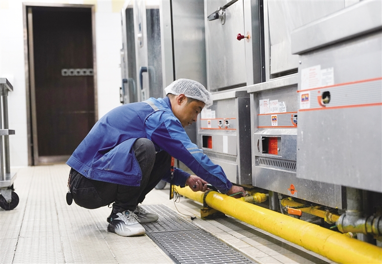 在香格里拉酒店,拉薩暖心公司工作人員對酒店的鍋爐房、廚房等地開展了燃?xì)獍踩[患排查。拉薩暖心公司客戶服務(wù)部抄表中心主任張雁龍手拿檢測儀器,對鍋爐房、廚房內(nèi)的燃?xì)夤艿浪薪涌?、燃?xì)庠罹?、軟管、燃?xì)鈭?bào)警器、安全閥等全部進(jìn)行了檢查,并對每一項(xiàng)檢查結(jié)果進(jìn)行了登記。