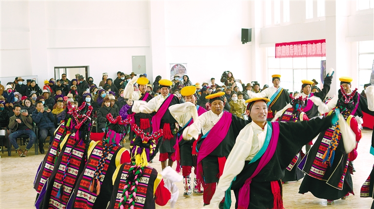 圖為甲瑪鄉(xiāng)“諧欽”藝術(shù)團(tuán)表演“甲瑪諧欽”。記者 格桑倫珠 攝