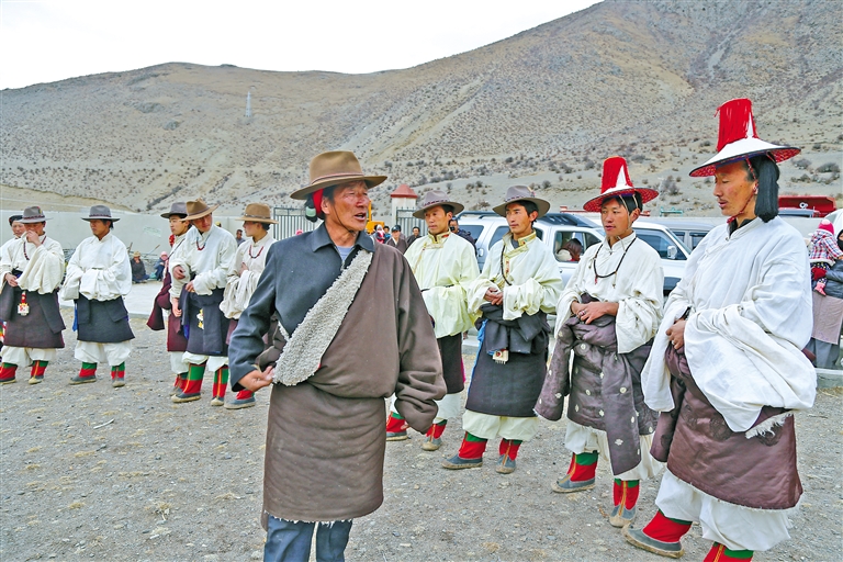 “小時候,我看見大人們在草地上跳‘熱振曲卓’,舞姿太漂亮了。我不想我的后代只能在書本里看到這個舞蹈,希望把它傳承下去。”56歲的宗巴為了恢復“熱振曲卓”表演,于2015年成立了林周“熱振曲卓”傳播有限公司,致力于該舞蹈的傳承保護。