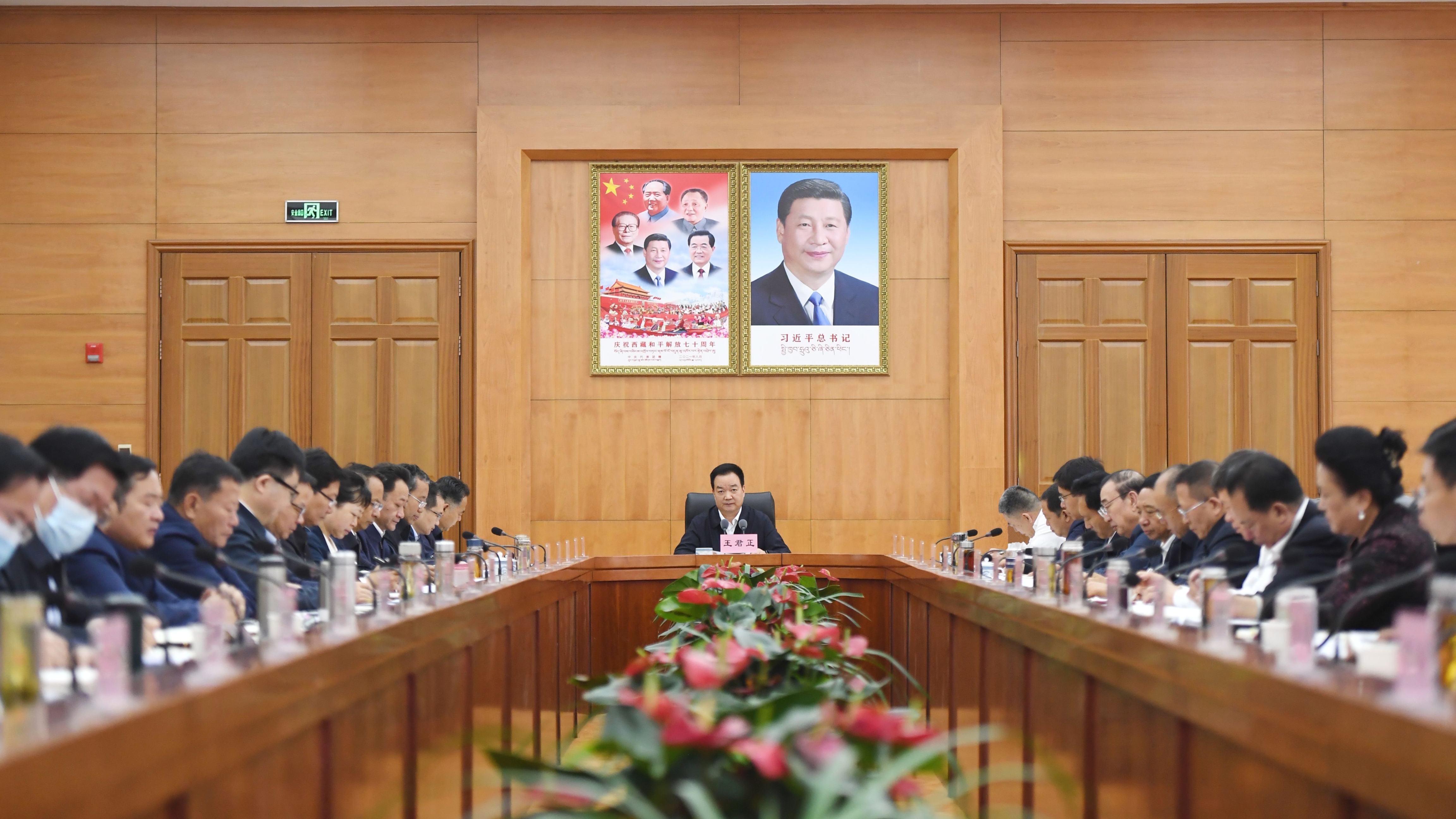 王君正指出,習(xí)近平經(jīng)濟(jì)思想是習(xí)近平新時(shí)代中國特色社會(huì)主義思想的重要組成部分,體系嚴(yán)整、內(nèi)涵豐富、博大精深,具有鮮明的科學(xué)性、人民性、時(shí)代性、實(shí)踐性、開放性,是推動(dòng)我國經(jīng)濟(jì)高質(zhì)量發(fā)展、全面建設(shè)社會(huì)主義現(xiàn)代化國家的科學(xué)指南。全區(qū)各級(jí)黨員領(lǐng)導(dǎo)干部要提高政治站位,全面系統(tǒng)學(xué)習(xí)習(xí)近平經(jīng)濟(jì)思想的核心要義、精神實(shí)質(zhì)、豐富內(nèi)涵、實(shí)踐要求,深刻領(lǐng)悟蘊(yùn)含其中的科學(xué)世界觀和方法論,堅(jiān)持好、運(yùn)用好貫穿其中的立場觀點(diǎn)方法,自覺轉(zhuǎn)變發(fā)展理念和發(fā)展方式、推動(dòng)經(jīng)濟(jì)高質(zhì)量發(fā)展,堅(jiān)持以創(chuàng)新驅(qū)動(dòng)為引領(lǐng)、破解制約高質(zhì)量發(fā)展的瓶頸,繼續(xù)深化體制機(jī)制改革、為發(fā)展持續(xù)提供動(dòng)力和活力,堅(jiān)持底線思維、主動(dòng)應(yīng)對(duì)和戰(zhàn)勝風(fēng)險(xiǎn)挑戰(zhàn),扎實(shí)推動(dòng)共同富裕、著力解決發(fā)展不平衡不充分問題,實(shí)行高水平對(duì)外開放、推動(dòng)實(shí)現(xiàn)可持續(xù)發(fā)展,不斷提升分析研判、研究謀劃發(fā)展、有效推進(jìn)工作的能力,更好用黨的創(chuàng)新理論武裝頭腦、指導(dǎo)實(shí)踐、推動(dòng)工作。