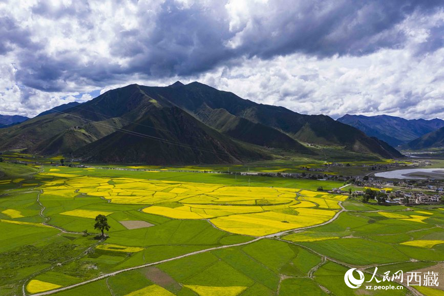 七月,正值拉薩墨竹工卡縣油菜花盛放的季節(jié)。經(jīng)過(guò)充足的光照、豐沛的雨水,大地仿佛披上金毯,黃燦燦的油菜田與翠綠的山巒構(gòu)成了一幅美麗的鄉(xiāng)野畫(huà)卷。