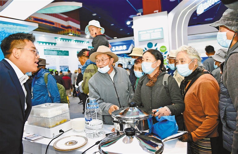 配圖:在第五屆中國(guó)西藏旅游文化國(guó)際博覽會(huì)展覽展示上,高原炊具受到群眾青睞。(資料圖片)記者 旦增蘭澤 攝