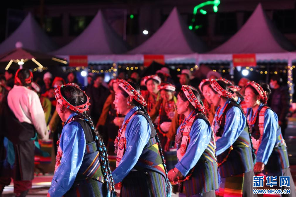 7月23日,在西藏定日2023珠峰音樂美食節(jié)現(xiàn)場(chǎng),民間藝術(shù)團(tuán)表演國(guó)家級(jí)非物質(zhì)文化遺產(chǎn)定日洛諧。新華網(wǎng)發(fā) 李騰 攝