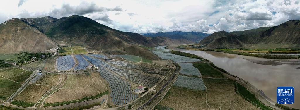 鳥瞰桑日縣葡萄種植基地(7月26日攝,無(wú)人機(jī)照片)。新華社記者 姜帆 攝