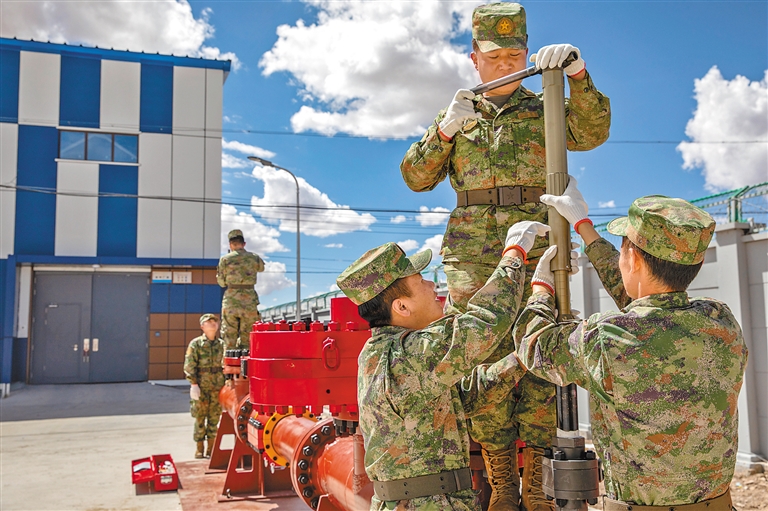 在昆侖山口,軍區(qū)保障部某管線(xiàn)大隊(duì)四中隊(duì)守護(hù)著格拉輸油管線(xiàn)海拔最高一段,這里的100多公里線(xiàn)路橫亙?cè)诤0?500多米的無(wú)人區(qū),官兵們不顧高寒缺氧和烈日大風(fēng),沿著山脊逐段排查情況。官兵們紛紛表示,要大力發(fā)揚(yáng)老西藏精神和大隊(duì)“五缺五不缺”精神,面對(duì)自動(dòng)化程度更高、科技含量更高的管線(xiàn),將以絕對(duì)的忠誠(chéng)、過(guò)硬的本領(lǐng)、無(wú)私的奉獻(xiàn),守護(hù)好“雪域大動(dòng)脈”安全,持續(xù)為西藏的繁榮發(fā)展作出更多貢獻(xiàn)。