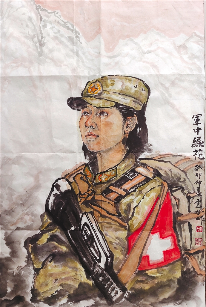國(guó)畫(huà)《軍中綠花》。 周天亮 作