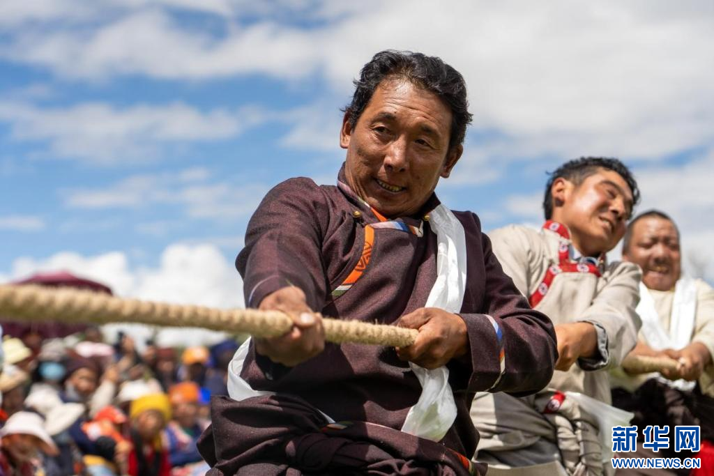圖為達孜“望果節(jié)”拔河比賽現場(7月28日攝)。新華網發(fā) 李騰 攝