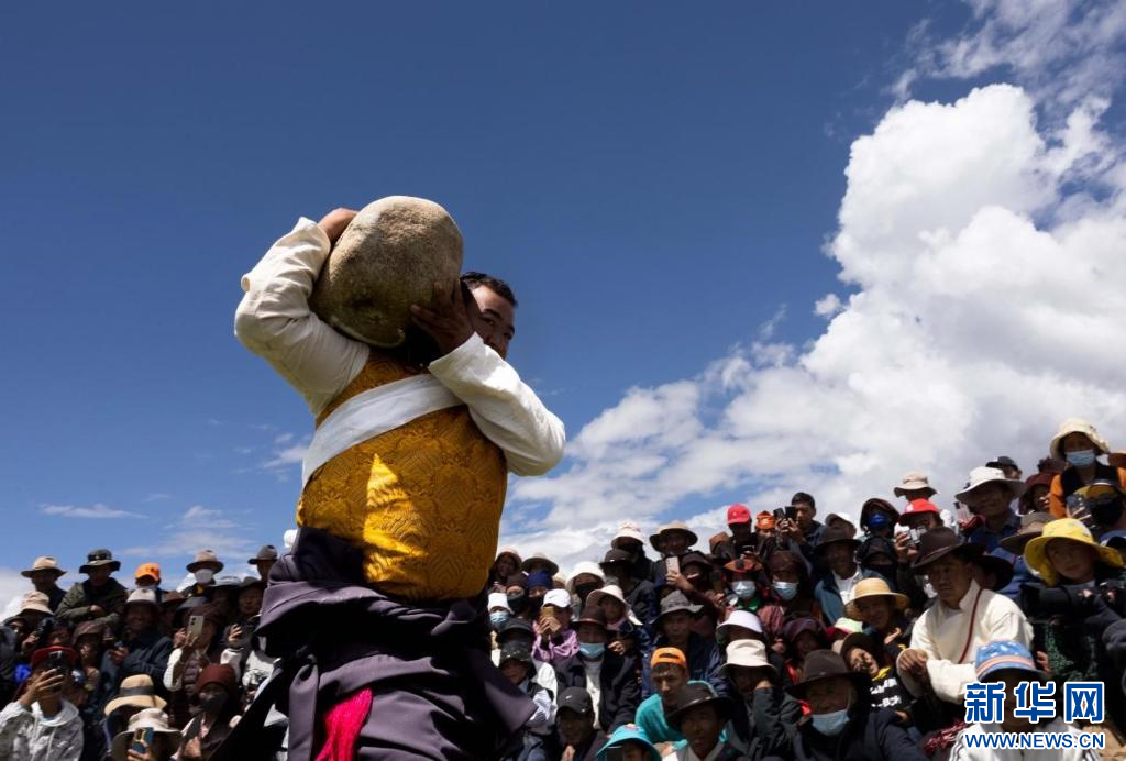 圖為達孜“望果節(jié)”抱石頭比賽現場(7月28日攝)。新華網 旦增努布 攝