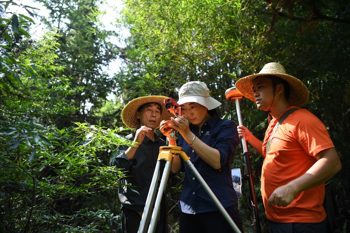 2022年9月22日,白拉曲珍在廣東韶關(guān)樂(lè)昌市張溪村生態(tài)監(jiān)測(cè)樣地工作。新華社記者鄧華 攝