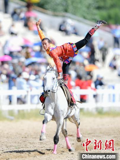 圖為馬術(shù)表演現(xiàn)場。貢嘎來松 攝