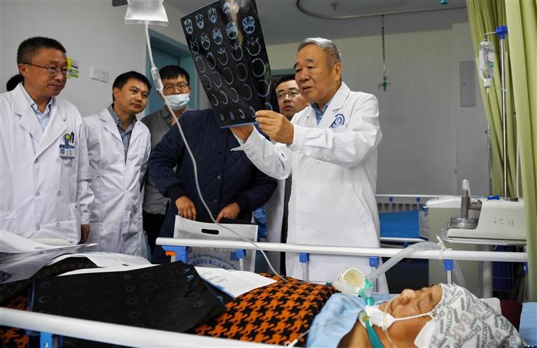 “哪里不舒服了?”“我的頭部曾經(jīng)受過傷,現(xiàn)在過來復(fù)查?!薄拔蚁瓤匆幌??!薄?近日,在自治區(qū)第二人民醫(yī)院門診部,中國科學(xué)院院士、首都醫(yī)科大學(xué)附屬北京天壇醫(yī)院神經(jīng)外科學(xué)中心主任醫(yī)師趙繼宗耐心地詢問病人病情。這是首都醫(yī)科大學(xué)附屬北京天壇醫(yī)院神經(jīng)外科專家團(tuán)隊(duì)幫助西藏自治區(qū)第二人民醫(yī)院推進(jìn)神經(jīng)外科學(xué)科建設(shè),并開展義診、病例討論、手術(shù)以及學(xué)術(shù)交流等活動(dòng)。