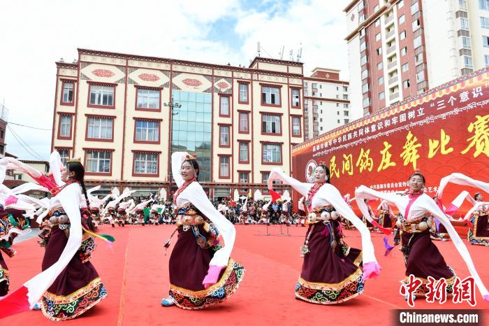 8月20日上午,西藏昌都市第九屆三江茶馬文化藝術(shù)節(jié)民間鍋莊舞比賽在茶馬廣場(chǎng)舉辦,來自昌都市各縣(區(qū))的16支隊(duì)伍參賽。