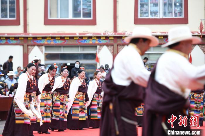圖為昌都市民間鍋莊舞比賽現(xiàn)場(chǎng)。貢嘎來松 攝