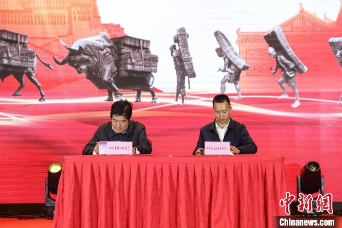 圖為四川省農(nóng)業(yè)農(nóng)村廳一級(jí)巡視員子克拉格(圖左)和西藏自治區(qū)農(nóng)業(yè)農(nóng)村廳副廳長(zhǎng)羅丹(圖右)簽訂深化農(nóng)業(yè)合作框架協(xié)議現(xiàn)場(chǎng)。貢確 攝