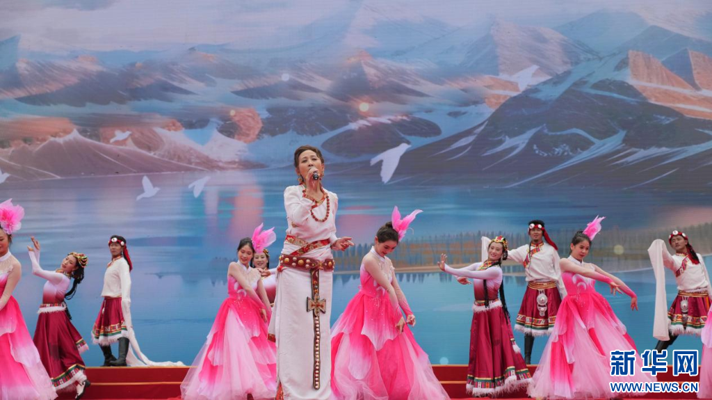 圖為央金蘭澤在演唱《愛在思金拉錯(cuò)》(8月24日攝)。新華網(wǎng) 柑丹鴦琦 攝