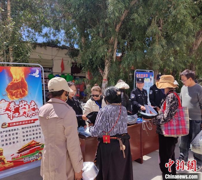 圖為普法宣傳活動(dòng)現(xiàn)場,民警向民眾講解掃黑除惡相關(guān)知識。黃創(chuàng)偉 攝