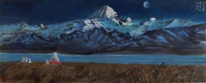 圖為劉洋國畫作品描繪的西藏岡仁波齊。 劉洋 供圖