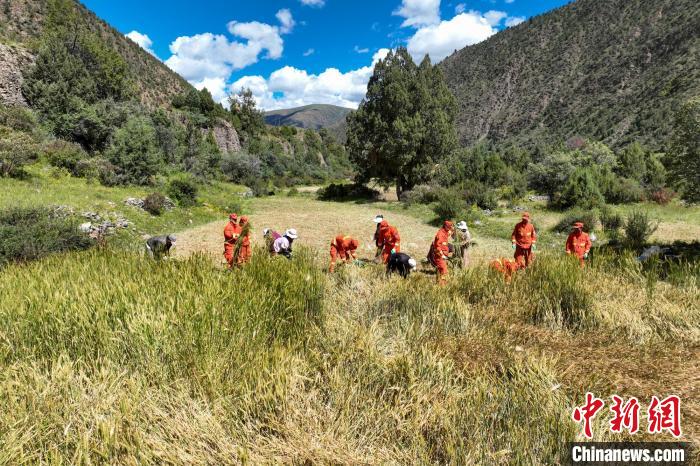 圖為消防員收割后搬運(yùn)青稞。劉星文 攝