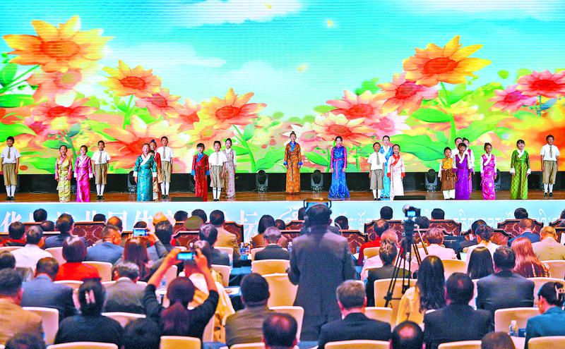 9月19日,由自治區(qū)黨委、自治區(qū)政府主辦的首屆西藏鑄牢中華民族共同體意識(shí)論壇在拉薩開幕。圖為在開幕式上,西藏珠峰少年合唱團(tuán)演唱《珞巴少年》。記者 潘多 攝