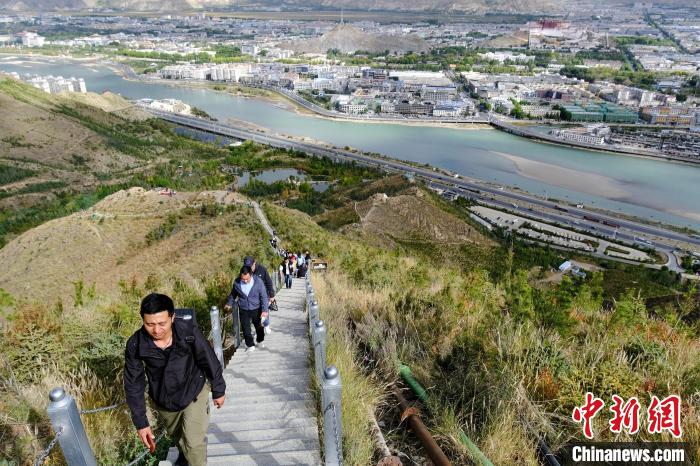 “山不見我、我自見山?!薄安槐馗嬖V我山有多高路有多遠,我會親自來看?!薄伴L路漫漫云燦燦,輕舟已過萬重山。”……9月28日,中新社記者在拉薩南山公園半山腰看到游客、市民的登山留言,現(xiàn)場也可以看到,長長的步道上滿是登山者,拾階往那山頂而去。