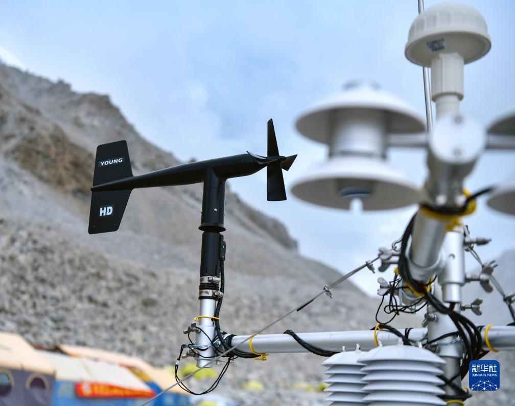 位于海拔5700米卓奧友峰前進(jìn)營(yíng)地的自動(dòng)氣象站(9月29日攝)。新華社記者 晉美多吉 攝