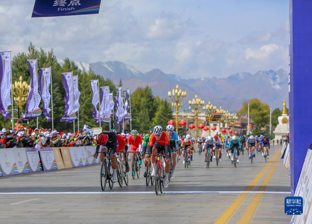 10月17日,參賽選手沖過終點。新華社記者 普布次仁 攝