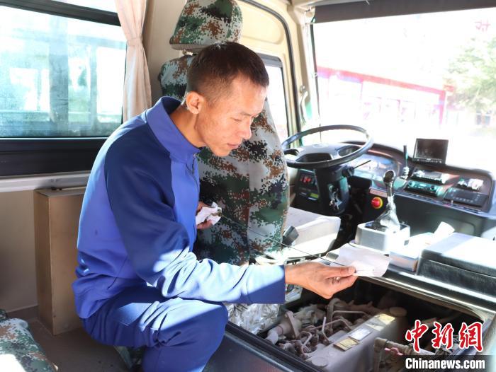 圖為指戰(zhàn)員保養(yǎng)車輛。吳蕾蕾 攝