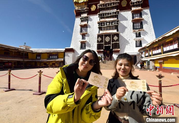 11月1日,西藏拉薩,來自四川瀘州的游客展示布達拉宮參觀券。中新社記者 李林 攝