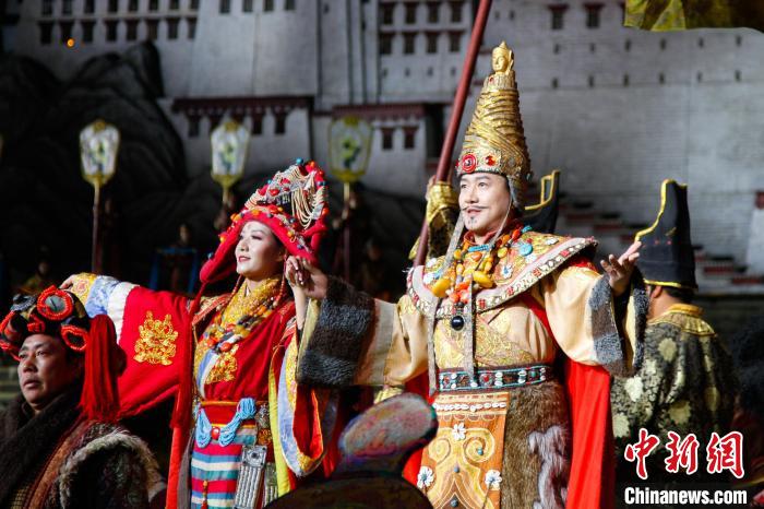 圖為劇中再現(xiàn)文成公主與松贊干布相會。貢確 攝