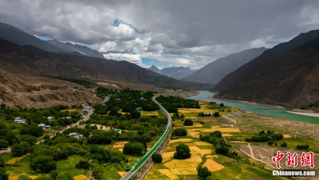 川藏鐵路拉林段高原復(fù)興號(hào)通過(guò)西藏林芝朗縣堆巴磄。魏方合 攝