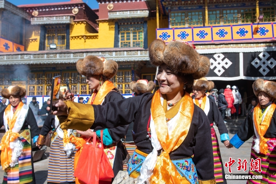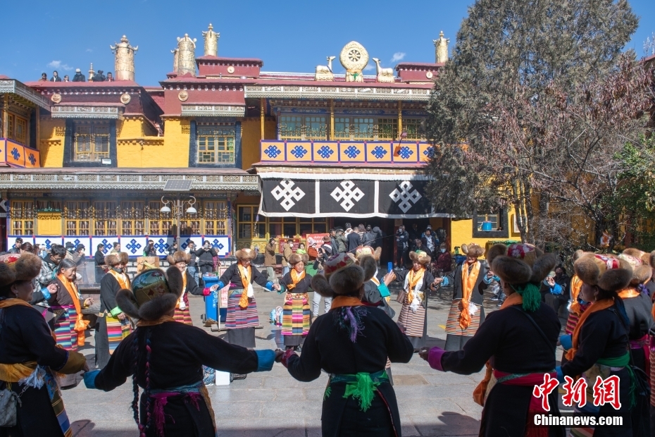 11月15日,西藏拉薩,拉薩婦女在扎基寺跳起傳統(tǒng)舞蹈,迎“仙女節(jié)”?!跋膳?jié)”即吉祥天母節(jié),藏語稱“白來日追”。相傳藏傳佛教最高護(hù)法神之一班丹拉姆的女兒白拉姆,不顧母親的反對與赤尊贊私定終身,班丹拉姆一怒之下將赤尊贊趕到拉薩河南岸,規(guī)定二人僅每年的藏歷十月十五日相見。中新社記者 貢嘎來松 攝